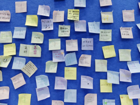 活动前期,心助会贴心布置了活动场地,划分出留言区与涂鸦区两大专属空间,准备了便利贴、彩笔、画纸等物料,打造了灵活多样的表达场景,让同学们可以更好地释放情绪、传递心意。